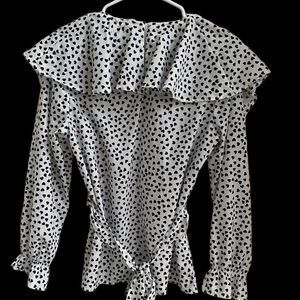 Goodnight Macaroon Heart Pattern Tie Back Black & White Size Medium Top