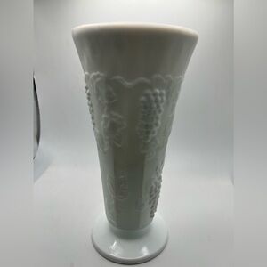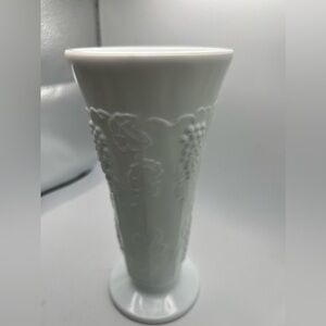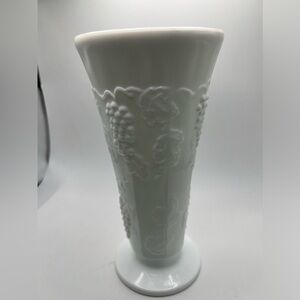 Beautiful1950’s vintage grapevine pattern milk glass vase.