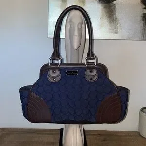 Vera Bradley Navy Microfiber Hand Bag W/Brown Leather Trim WILDWOOD PARK Limited