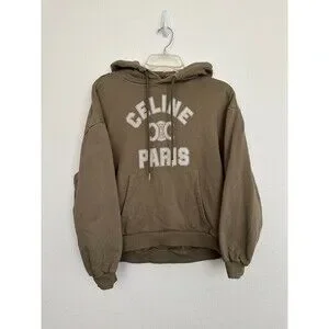 Celine Women's Cropped Hoodie Logo Spellout Autumn/Winter Collection Green Small.