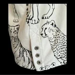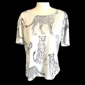 Jane+ Delancey- Unique White Top /Shirt /Featuring Tigers, and Leopards.