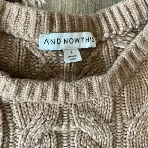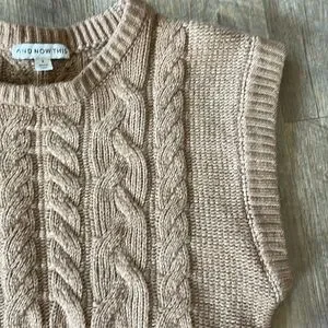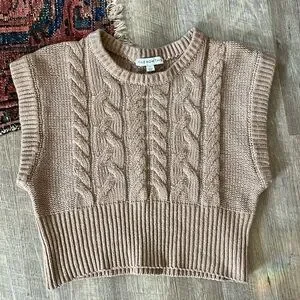 Gently loved cropped sweater vest by and now this. Features a lovely knit design in a light brown color. Missing fabric content tag. A perfect layering piece to add to your collection