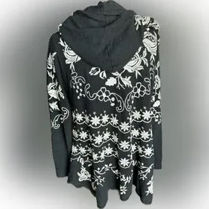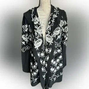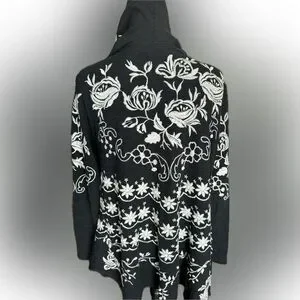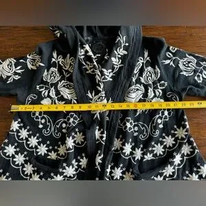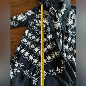 Black 100% Cotton long sleeve jacket. Gorgeous embroidery!