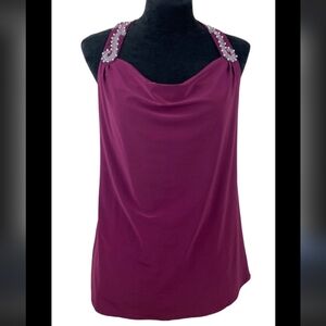 White House Black Market Maroon Bead Pearl Sequin Racerback Dressy Tank Top Sz M