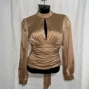 Badgley Mischka champagne satin blouse shirt top XS 2 Rent the runway repair