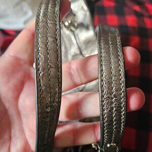Coach Metallic Silver Hobo Purse No. L117B-F17166 Pre-owned Excellent Condition. Hand straps only with minor scuffs on edges, no shoulder strap available.