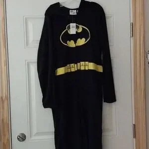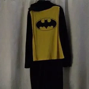 NWT DC Batman pajamas with attached hood and cape black and yellow size L