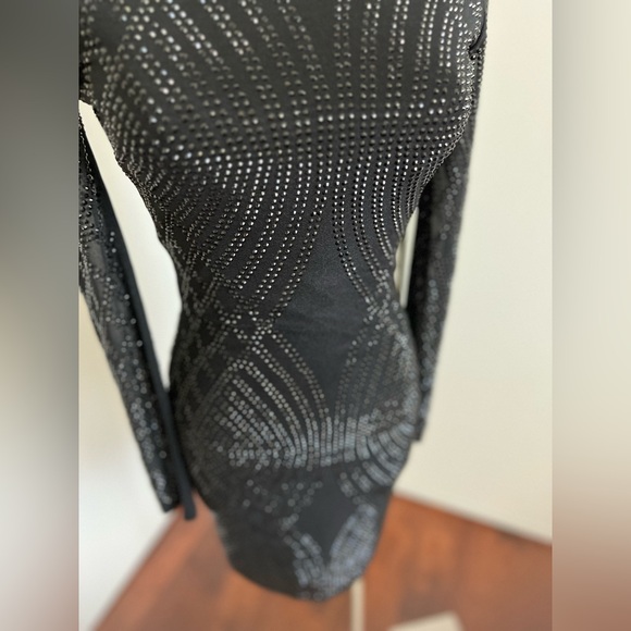 New , without tags . Black mini dress with black rhinestone design. Perfect for night out , date or special event. Just pair it with high heel shoes and you are ready to go, no accessories needed. Easy to pack on a trip, takes very little space. Lightweight. Great for almost any occasion.