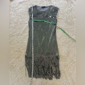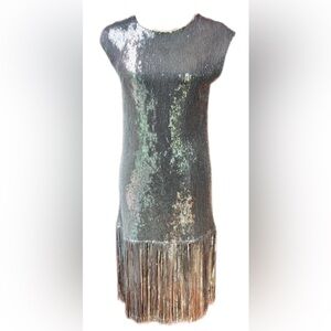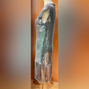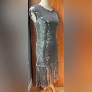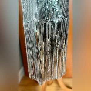MAGARI Italian Made Sequin Silver w/Tassles Dress Size Small