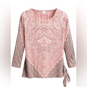 Chico's Size 3 US XL Symmetrical Scrolls Samantha Top 3/4 Sleeves NWT