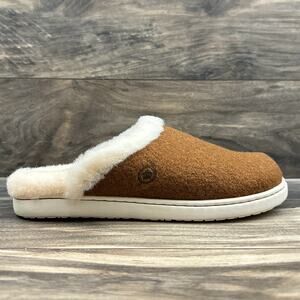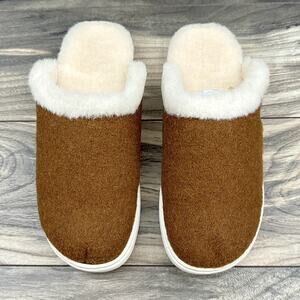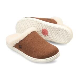 NIB Born Zoe Wool Shearling 9M Slip On Clogs Slides Cognac