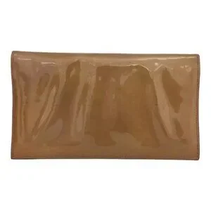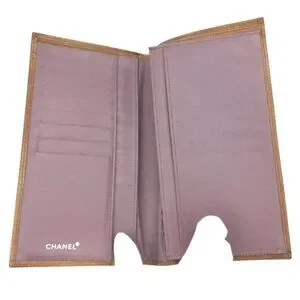 Shiny Brown, Patent Leather, Long Folding Wallet accented by Silver Metal Signature "CC" Logo Medallion at front.