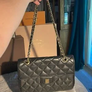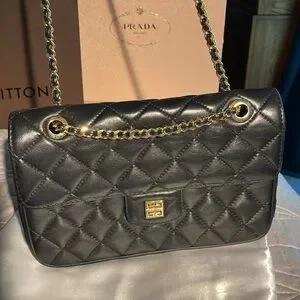 Vintage Givenchy Paris Quilted Lambskin Shoulder and Crossbody Bag in great condition. This bag gives Chanel vibes and is timeless. The corners do not have rubbing. Piping intact. The gold chain and hardware have minor scratches. It does have minor cracking on the interior sides as shown in pictures. Easily repaired on your own or with a cobbler. See picture of authentication certificate. Comes with an unbranded dust bag. This bag typically sells for much more. Measurements are 9.5”x7”x3”.