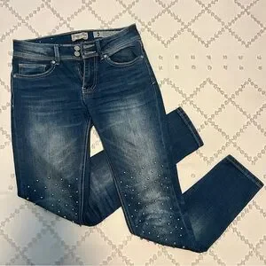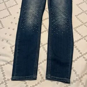 3D silver embellishments on unique jeans