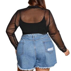 Black mesh sheer crop cropped micro arm sleeve long sleeve coverup shrug pullover stretch summer vacation layer concert rock festival layer goth punk fun funky casual day night date versatile brat