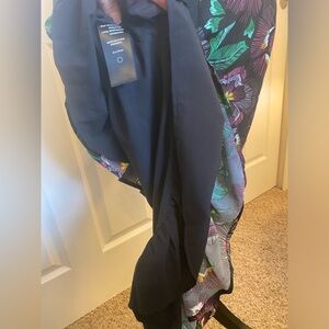 Nwt. High low ruffle style trim at the bottom. 95% polyester. 5% spandex. Tropical floral print.