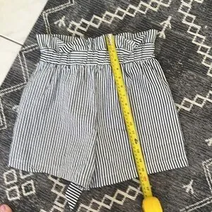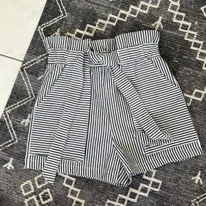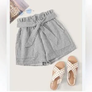 Zara Tie Waist Pinstripe Paperbag Shorts Charcoal White