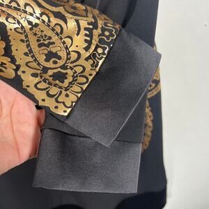 Vintage Cache Women's Metallic Gold Paisley Cocktail Dress 6 Long Sleeve Formal