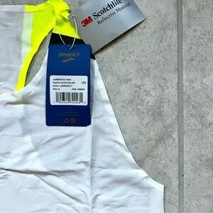 New with tags lightweight running tank from Brooks Running. The lightest fabric yet for hot nights when you need extra visibility. 3M reflectivity helps drivers recognize you as a runner in motion from 600 ft away.