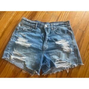 American Eagle 90s Boyfriend Jean Shorts Distressed Blue Size 6 Festival Cutoff