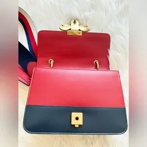This bag comes with dustbag , NO box. Features with Snap closure,Leather ID holder with gold embossed "Loved",Metal bee with pearls and crystals and Removable Web shoulder strap 20”drop. Microfiber lining with suede-like finish with 1 zip pocket and 1 slip pocket.