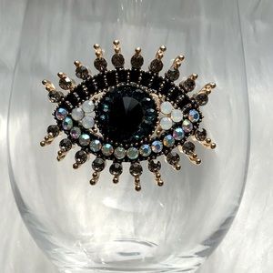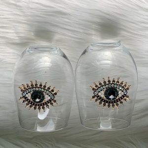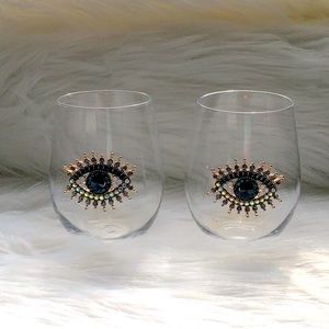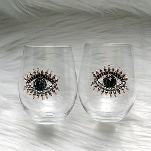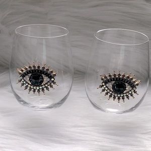 RACHEL ZOE EVIL EYE HAMSA STEMLESS WINE GLASS DRINKWARE