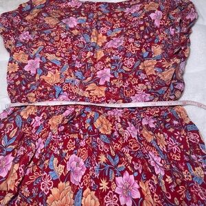 This feminine and flowing floral boho dress is a versatile piece that can be styled as a mini or midi dress, depending on your height. Detailed measurements are provided in the attached photos. The charming floral print adds a touch of elegance, making it perfect for dressing up with high heels and jewelry or dressing down with sandals for a more relaxed look. Waist sits at a 12 but can be stretched to an 18 😊💖