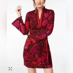 Trina Turk Joni Printed Bell Sleeve Dress Medium