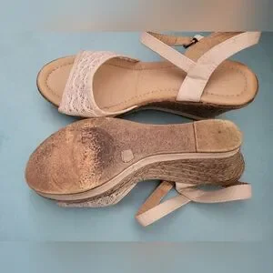 Pretty Beige Lace Wedge Sandals sz 10