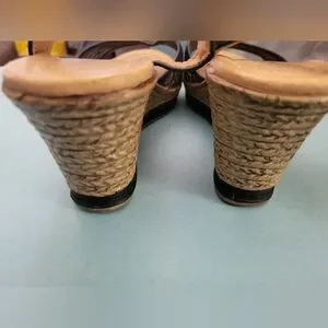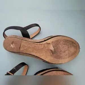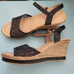 Pretty Black Lace Wedge Sandals sz 10