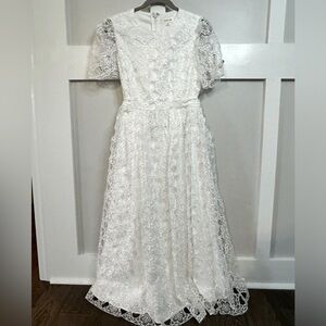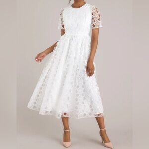 White Floral Embroidered Midi Dress, size M. NWT