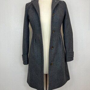 ame Brand: J. Crew Womens Size 00 Wool Skirted Dress Coat Tan Brown Button EUC
