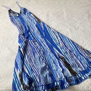 Poupette St Barth Denise Mixed Print Maxi Dress Strappy Back Blue White Black S