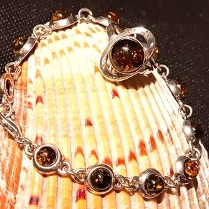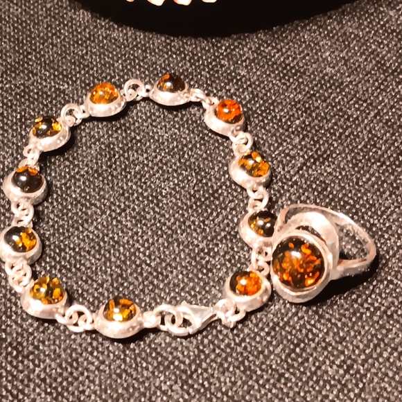 Set Baltic Amber Bracelet Ring Sterling Silver