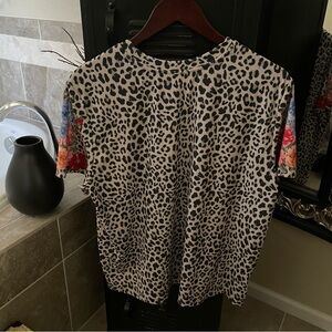 This Johnny Was short sleeve tee is animal print with flowers on the sleeves. It is moisture wicking and very comfortable.