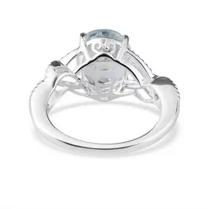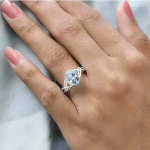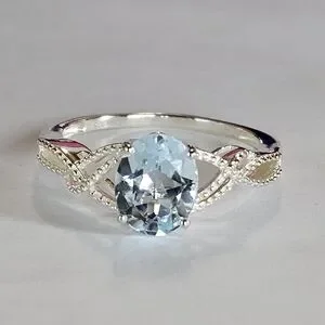 Beautiful braided style with a 3 carat genuine sky blue topaz solitaire stone set in a solid sterling silver setting with platinum overlay. Designer signed D'Joy 925. Size 11.