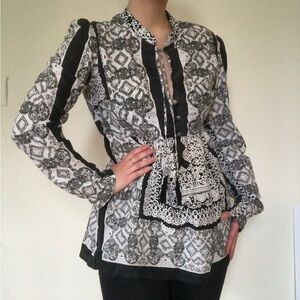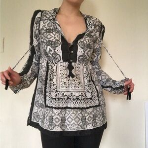 Prana Black and White Paisley Tunic Blouse