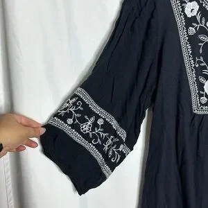 Like new navy button-up with white embroidery from Lane Bryant, size 18/20. 3/4 sleeves with gauze-like material so they stay breathable!