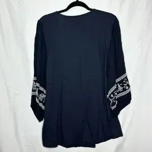 Like New Blouson Sleeve Henley Embroidered Top “Night Sky”