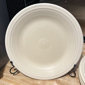 This listing is for 4 classic rim 10 1/2” dinner plates made by Fiesta. This is the retired Ivory color. These plates have been used but there are no chips or cracks.