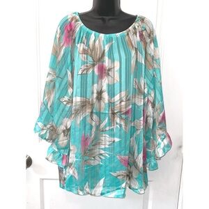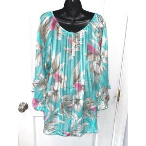 Easel pretty blue floral print long sleeve blouse size large
