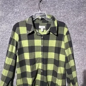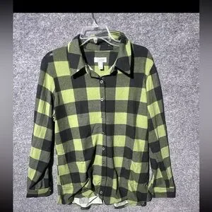 D & Co. Women's Long Sleeve Button Up Collared Green/ Black Medium