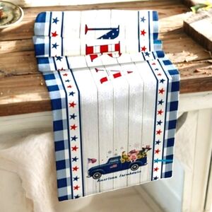 Patriotic vintage truck farmhouse summer table runner 13x90 NEW