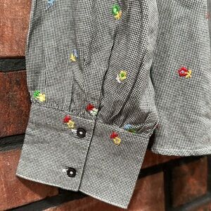 - its delicate mini check fabric is a sweet backdrop for delicately placed ditsy embroidery, making it an ideal subtle pattern mixing piece