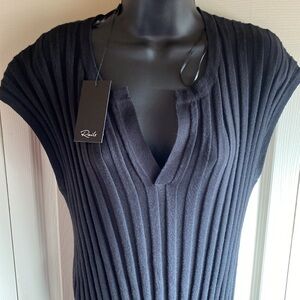 Rails NWT Ashley Vneck Black Cotton Blend Wide Ribbed Knit Dress size medium