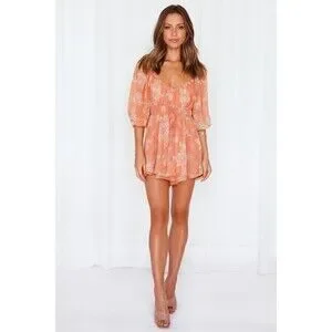 Hello Molly Sweet Harmony Romper Orange Floral Mini Vacation Balloon Slv 4 S