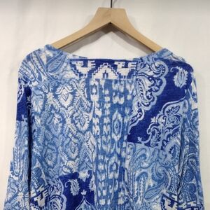Habitat Paisley Asymmetrical Blouse Womens L Blue Artsy Retro 90s Cottagecore