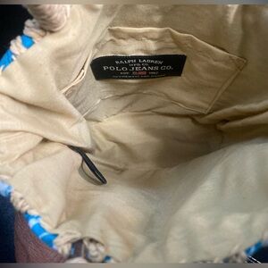 Ralph Lauren Polo Jean Co. Blue & White Bandanna Woven Straw Mini Bag