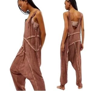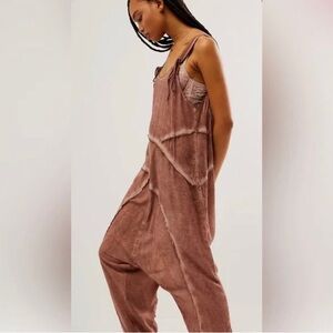 Ultra-soft and perfect for lounging around, this slouchy one-piece is featured in a full-length silhouette and washed fabrication with a scoop neck line and harem legs.