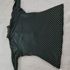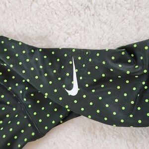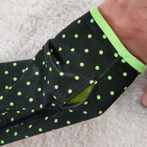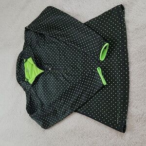 NIKE 3/4 zip sporty long sleeve top with thumb holes, black w green polka dots L